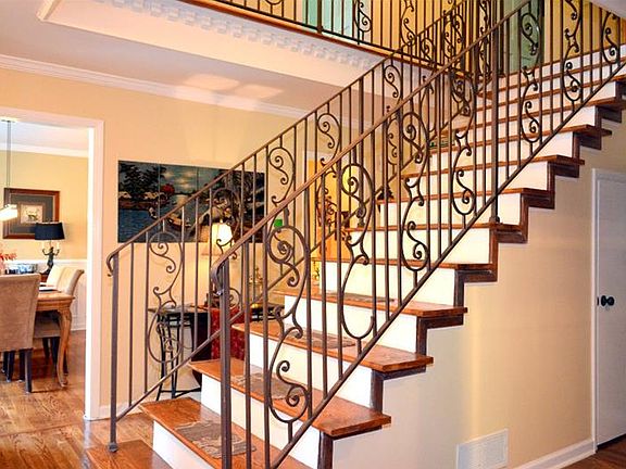 Center stairway with wrought iron creates stunning entry with a touch of New Orleans style. Fully updated, hardwoods throughout, great floor plan with current colors. Living, Office or Music Room and Dining Room off foyer. Granite and Stainless Kitchen with serving bar & breakfast area. Walk-in pantry. Comfortable Great Room. Large master suite with three more generous bedrooms upstairs. Outside living is a pleasure with screened living room and attached outdoor dining. Lots of gardens on wooded lot. Front porch with seating. Nothing to do here, just move in.