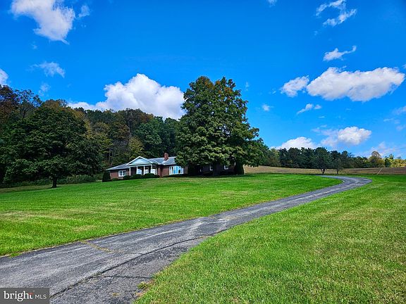 A beautiful all brick ranch style home perfectly and privately situated on two acres, surrounded by sweeping farm fields, with Pennsylvania mountain views and stunning western sky sunsets! This house is located just outside the quaint small town of Three Springs, Pennsylvania. The all-on-one main floor living quarters includes a large open kitchen design with an adjoining dining room with fireplace, a separate office suite with private entrances, and a spacious living room. The house features large glass doors and oversized windows designed for an abundance of natural light and to enjoy the picturesque views. The main floor also includes 3 spacious bedrooms, a large bathroom, and a laundry room with an integrated second bathroom. This well-maintained home also has a large Great Room in the basement with a fireplace for entertaining larger size parties. Adjacent to the Great Room is a prep kitchen area to support extra cooking for larger gatherings. The remainder of the basement is for storage and includes an outside stairway with a built-in ramp to facilitate keeping your riding mower in the basement if you so desire. The back of this home includes a custom paver patio area situated to enjoy morning and evening viewing of Pennsylvania wildlife. This two-acre lot includes a meticulously maintained showcase lawn, space for a large vegetable garden, and a wooded area for your enjoyment. This is a well-maintained property with a prime location for enjoying rural life, stunning sunsets, and outdoor activities! Close to Lake Raystown and The East Broad Top Railroad.
