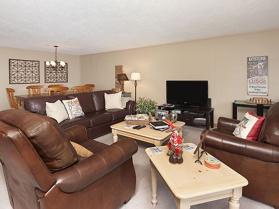 Beautifully maintained property where pride of ownership shines and which has not been short-term rented. Surrounded by mature trees, manicured courtyard and mountain views in all directions. Relax in the spacious bedrooms and living space with wood burning fireplace, large deck, updated bathrooms and open kitchen. Enjoy all of the amenities including the swimming pool, hot tub, Summit County bike path, Keystone Resort Shuttle and easy access to the Snake River and nearby hiking/biking trails.