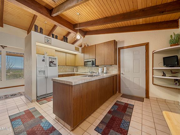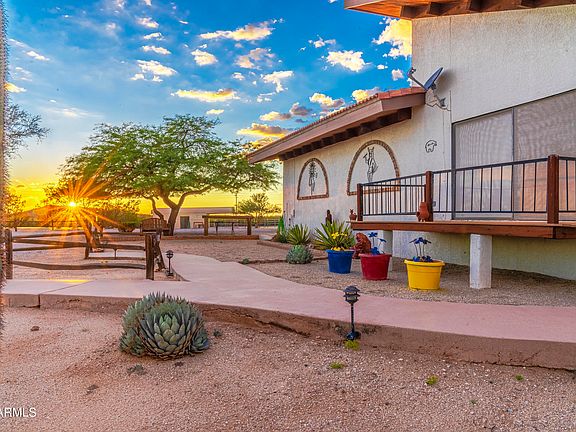 MOTIVATED SELLER! Recently appraised at $700,000.(June 2023). Serious buyers bring us an offer on this outstanding home on 5 ACRES. Stunning MOUNTAIN VIEWS, three good sized bedrooms, three full baths, sliding doors to private decks, vaulted ceilings. Living room fireplace, private nook above the second bedroom. HORSE SET UP IN PLACE with tack room and covered carport. Ride out to state land from your back yard. Very nicely landscaped with South American Mesquite trees. Pull-down access to storage loft in the spacious two-car garage. ALL FURNISHINGS AND APPLIANCES CONVEY. Brand new septic system added (2023) Lots of peace and privacy here. Beautiful home!