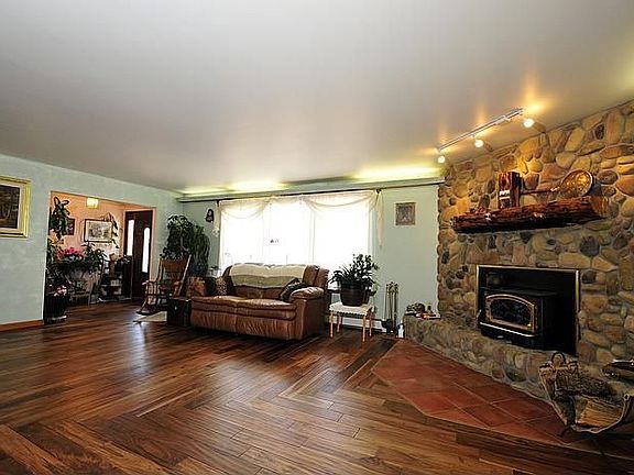 This Home is located on 16.2 acres includes quality finishes throughout , including in floor heating in the great room with a wet bar, hand scraped hardwood floors in living area, and updated bathrooms with double sinks. The kitchen area includes a Viking Stove, double ovens, on demand hot water and opens to a large deck. This home includes an in-law suite, or rental area for added income. This walk-out basement has its own private entrance. The property is zoned for Agriculture which reduces property taxes, 3 fireplaces, 1 wood, 1 propane, 1 pellet stove. It has 2 springs on property, and a pond. 50 year warrant on metal roof, the house has a whole house back-up power generator. New barn with concrete floor. Separate garden area, and a chicken coop. Outdoor fire pit. Also a separate work shop attached to the garage.