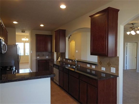 Beautiful two story home with stone and brick front plus a front porch! Tile in entry, kitchen, baths and utility room. Carpet in the living areas and bedrooms. Lots of space. Kitchen is open to huge den and breakfast, includes 42 in cabs, granite counter tops, exquisite tile/glass back splash, pantry. Master bath includes separate shower, garden tub, separated his/her sink and a large walk-in closet with built-ins. The staircase is highlighted with wrought iron spindles that lead you to the huge upstairs game room, 3 spacious bedrooms and 2 full baths with tile floors and tile surround in the tub/shower! Entertain on the big patio in back yard! Lots of great storage, walk-in closets, linen closets and walk-in attic storage. Refrigerator, washer and dryer are included.