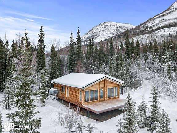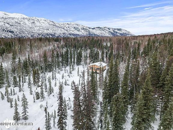180 degree views of Bold Peak and the surrounding Chugach Mountains await you from this sweet, Pan Abode, log cabin. A perfect getaway cabin, or full-time residence. Eklutna Lake State Park is 1 mile away. 2/.5, open kitchen/dining/living, woodstove and newer Toyo stove to keep you warm. Two outdoor sheds for all your gear. MTA for internet/wifi. NO running water.