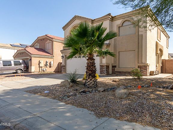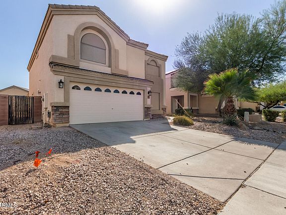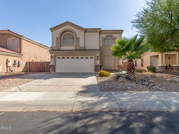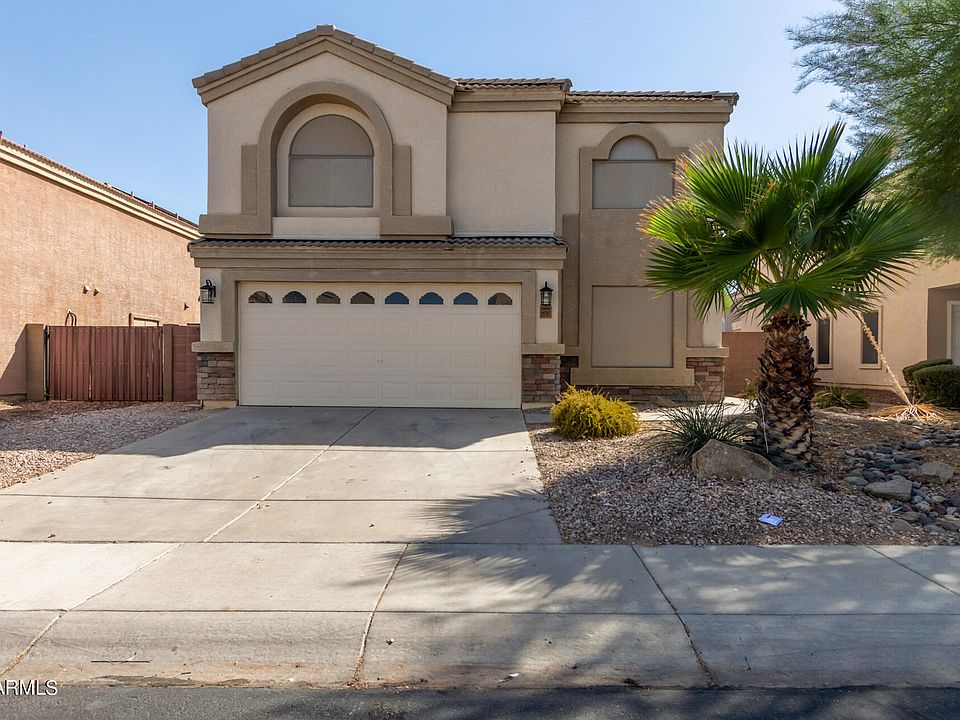 Are you looking for a place to call home? Introducing a lovely 4-bed, 3-bath residence with stone accents, a 2-car garage with cabinets. You're greeted by a great room with a neutral palette and a harmonious blend of carpet and tile flooring. The kitchen is a culinary delight, with paneled cabinets with crown moulding, recessed lighting, built-in appliances, a pantry, and a peninsula with a breakfast bar. A sizable loft offers versatility, perfect for an office or entertainment room. Retreat to the main bedroom, a sanctuary with an ensuite with dual sinks and a walk-in closet. The backyard promises evenings of relaxation with a full-length covered patio, natural turf, and a cozy fire pit with sitting areas. This value won't disappoint! Brand new Heat/AC system too.