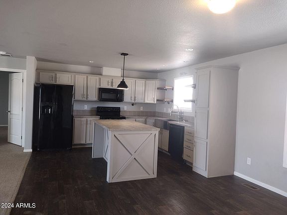 Come preview one of the most popular floor plans offered by Cavco. This Ranch Model offers a split floor plan with an open and spacious family room to the kitchen and dining room. The island has plenty of space for baking and plenty of cabinet space. Farm style shelving will convey, and all appliances will convey. The main suite includes double sinks, garden tub and a walk-in shower. The large walk-in closet provides additional space along with the attached cabinets in the main bathroom. Additional features include a separate living room with exit to the back patio and three additional bedrooms on the east side of the home. This home includes 1.256 acres of land with fenced yard and separate drive along the west fence line for access to the north of the property. Solar is leased.