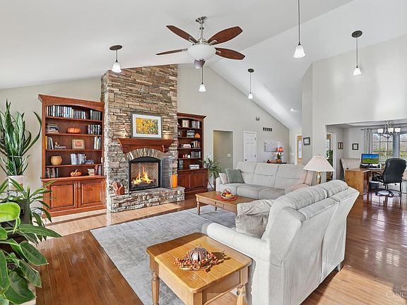 Welcome Home to 3500+ Sq Ft of Country Charm and Modern Comfort! This stunning open-concept Ranch on 5 sprawling acres features 3 bedrooms and 3 full baths. The Great Room is adorned with a beautiful stacked stone fireplace and elegant custom built-in bookshelves. Enjoy a Formal Dining Room (currently used as a Study) with a wall of built-in cabinetry. Spacious Kitchen w/42-inch natural oak cabinetry has a large island workspace/stainless appliances and opens to a sunny Breakfast Bay. The spacious finished Lower Level includes a media area, game space, full bath, large workshop, and plenty of storage. Step outside to lush vegetable and flower gardens, two outbuildings, and room to create your own mini farm or simply relax and enjoy the view. Conveniently located just minutes from shopping, restaurants, and major highways. Be sure to review the list of seller improvements, and say Yes! to this stunning property!