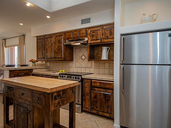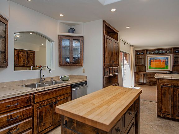 Elegant little fish in the Pristine big pond. Outstanding Southwestern style with ample rooms for your many activities. Kitchen is simply beautiful with being economical in space, Alder shelves and island and pantry are so pretty. Built-in library wall in adjoining living room marry the rooms in ambiance. Welcoming court yard, opens up to outdoors foyer. Just inside, intriguing multi purpose atrium floods tons of light into the living areas. Captivating mountain views from almost every window. Split bdrm plan puts a large bdrm off of the living room. Focal point of the livingrm is the comfortable beehive fire place with hand wrought iron decor. Second living room often used as the media or reading room. All architectural details of both baths are charming & timeless. Sweetheart of a home!