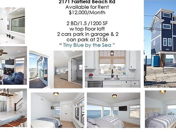 "Tiny Blue by the Sea" Quality constructed with top-notch sunsets and waterviews! 2171 is the very last home on the SoundFont side of Fairfield Beach Road. A fantastic wall of windows with an open floor plan. Radiant heat floors, astonishing kitchen with marble countertops, stainless steel appliances, and a very large kitchen island. Gather around, because this is the sweetest home you will set foot inside. Coastal vibes the second you walk in! Sun and salt every day! The finished attic offers additional bonus space with a full laundry room and access to the roof deck. AVAILABLE JUNE 1ST 2024. Tenants reside. Showings are limited. Available June 1st, 2024.