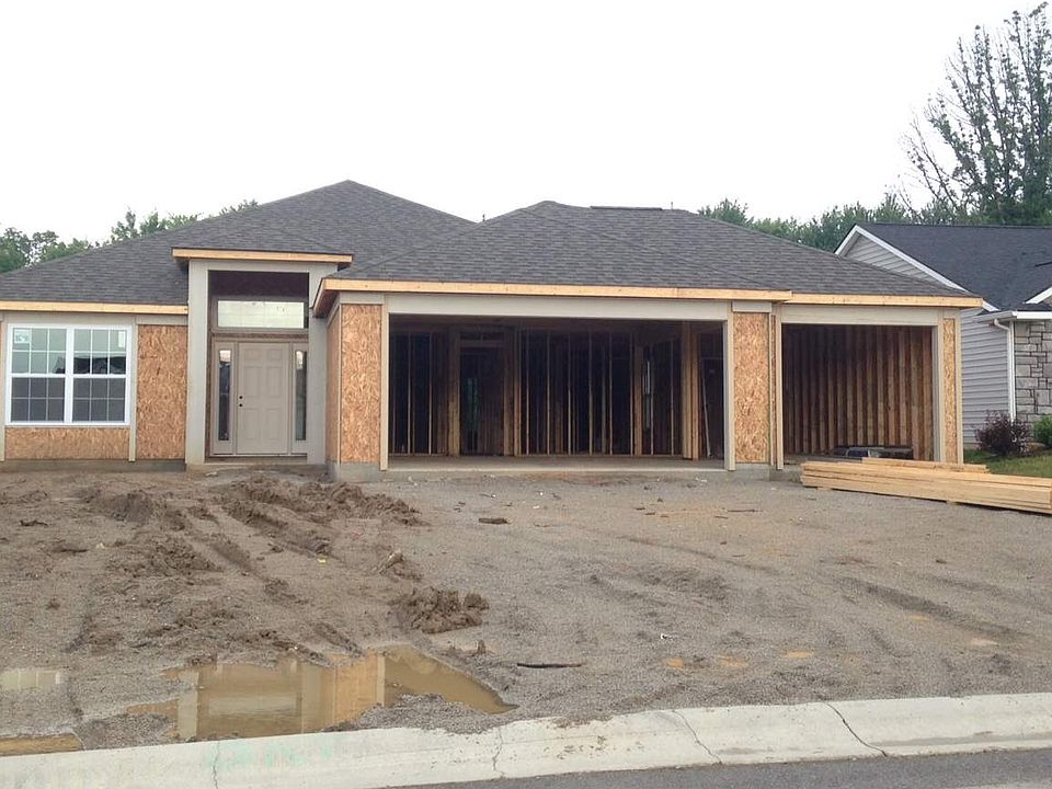 Prime common area lot in Southwest Fort Wayne - Modern, welcoming curb appeal gives way to an open feeling from the first step. Foyer with 10' ceilings and transom window opens to a great room where the 10' ceilings continue to the view out an oversized 8' patio door. This "Brees II" floor plan epitomizes the much desired open floor plan with split bedrooms. Open kitchen with pantry and cabinet crown molding with views of the great room fireplace and woods. The beautiful wooded common area views continue from the 14' x 9.5' covered porch. Quality shaw flooring in the kitchen/nook/foyer, gas log fireplace in the great room, and large master suite are just a few of the amenities that make this house feel like home. This home is priced with finished, 3-car garage, white painted trim, Kenmore glass top range,dishwasher & Microhood, 12 shrub package, and graded/seeded lawn. Estimated completion on this home is September 2015.