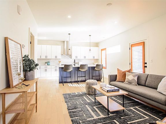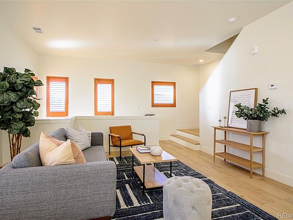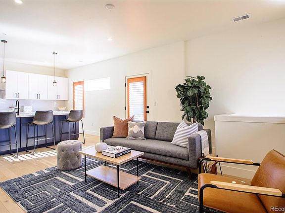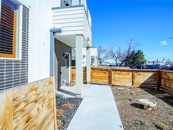 Modern nearly new townhome in University Hills. This light and bright end-unit townhome boasts fantastic features and finishes, and is perfectly ready to move in and enjoy the urban lifestyle! With an open floorplan and a vast array of windows (including gorgeous wood shutters), this home feels like an oasis, especially because of the private fenced front yard area! Featuring extensive hardwood flooring throughout, an open floor plan, a balcony off the kitchen, a pantry, and modern farmhouse style finishes, plus an attached 1-car garage. The second level boasts both bedrooms and the full bathroom, plus the laundry area. The 3rd level is the large rooftop deck, with both city and mountain views!