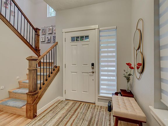 Sophisticated living in highly sought-after SE Boise. Updated clean, modern look with fantastic mix of indoor/outdoor living. Small neighborhood on a quiet cul-de-sac close to Downtown, Bown Crossing, BSU, greenbelt, Barber Park, and shopping. The living space is warmed by beautiful real hardwood floors which flow throughout the main & upper levels. You’ll walk into a freshly painted home & see the huge central kitchen highlighted w/custom painted cabinets, high-end stainless appliances, breakfast bar & granite counters, the greatroom w/cozy gas fireplace, dining area, small office area w/cabinets & workspace, upstairs is the tranquil primary suite featuring walk-in closet & en-suite bath w/walk-in shower, 2 add'l bedrooms & full bath. Outside you'll find the beautiful rear patio w/pergola, professional landscape and fenced for privacy and front outdoor entertaining area. Don't forget to look at the 2 car garage w/epoxy floors.