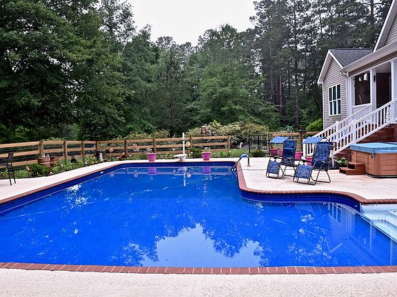 Heaven's Gaits is a 3116 sq. ft. 4BR/ 4BA home on 8 acres that offers peaceful country living close to downtown Aiken, equestrian venues, & south-side conveniences. Hardwood floors throughout the main level, large windows in every room, amazing storage throughout home & beautiful built-ins. Kitchen has 5 burner gas range, double ovens & granite counters. Bedrooms are en suite and all closets have built in drawers & shelves. Large master suite with it's own exit to back porch, a jetted tub, & amazing closet. Upstairs beyond the bonus room the unfinished attic spaces have so much potential already plumbed with electricity. Large salt water pool with a brand new pool liner (2018) & a hot tub with a new tub cover. All new three board wired fencing around the pool area. 3 large paddocks & 2 small paddocks with three board fencing, 3 stall barn & tack room w/ electricity. Attached 2 car garage & 2 car detached garage/workshop w/ electricity. Wooded entry & woods surrounding property.