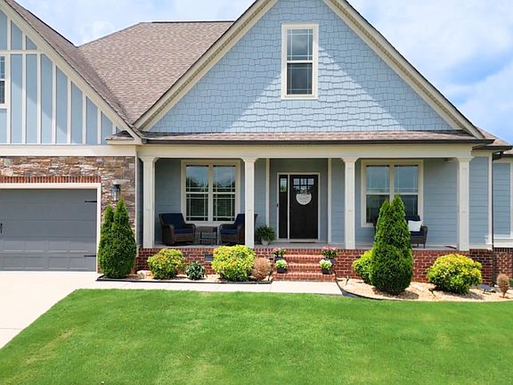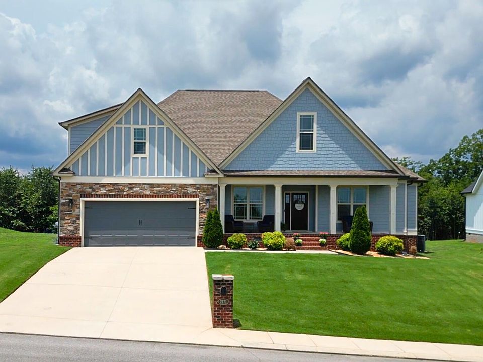 This beautiful 3-bedroom, 2-bathroom home is located in a private community neighborhood overlooking the Tennessee mountains. Natural light floods the spacious layout, including a large bonus room above the garage. The open living and eating areas flow seamlessly, with attention to detail throughout. Hardwood floors, carpets, and coffered ceilings add to the home's charm. Enjoy a flat backyard and covered front and back porch. The primary bedroom features a stunning vaulted ceiling, large walk-in closet, and luxurious bathroom with a tiled glass shower, soaker tub, and double vanity. This is the perfect forever home. Schedule a tour today!