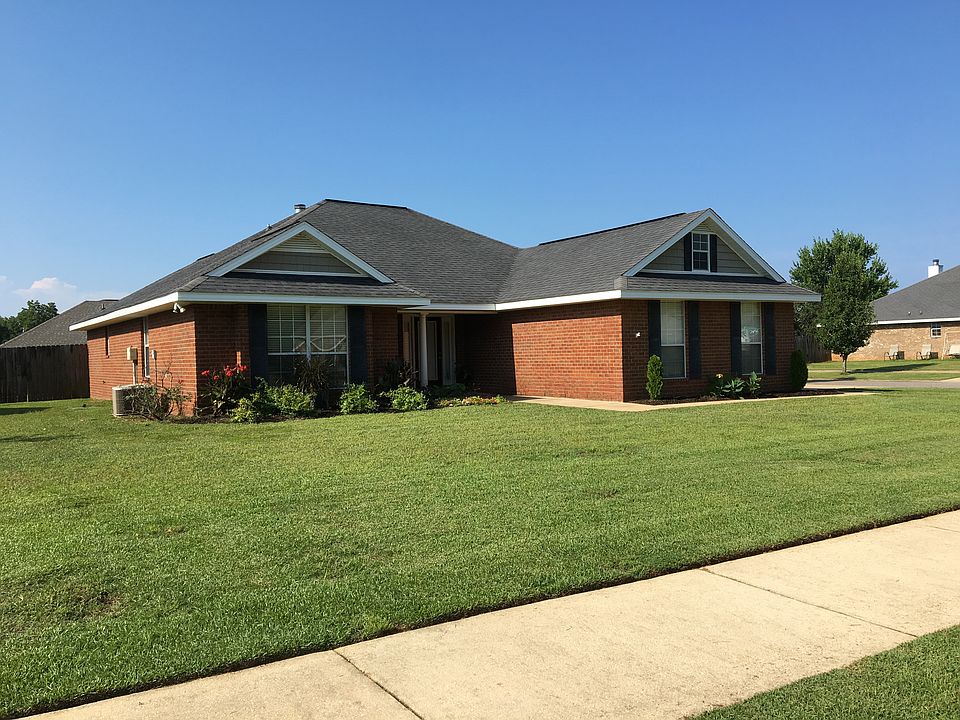 For Sale By Owner: 251-391-9683 Brick home on large corner lot. Front porch, rear covered patio, fenced back yard with 10x10 workshop (or storage shed). Interior features spacious living room with 10 ft ceilings and wood-burning fireplace. Master Bedroom has a 7x6 sitting area looking out to the back yard. Master Bathroom features shower and garden tub. Updated flooring with Pergo wood in living room, hall, and guest room, Berber carpet in Master and 2nd Guest room. Kitchen/dining combo with additional seating at kitchen counter if desired. Ceiling fans and window blinds throughout. All appliances convey (Washer & Dryer two years old, and Refrigerator less than one year). Very nice neighborhood with community pool and large common ground. Close to schools, shopping, and hospital (This listing is FSBO, no agents at this time, please)