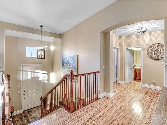 WOW! This large spectacular executive home is in on a premium back lot in a a quiet safe neighborhood with gorgeous mountain views. There are 2 master suites one up and one down! The dramatic entry leads on the right to the great room, and dining room. The kitchen is wide open to the living areas with granite counters and elegant tile backsplash, stainless appliances, a large island, custom cabinets and bamboo floors through the upper level. To the left of the entry is a bonus room and full bath plus a sumptuous master suite with a spa like bathroom including a 2 head shower, soaking tub, dual vanities, chandelier, and a large walk-in closet. Enjoy the HUGE deck off the great room perfect for parties or family fun! Downstairs is like a second house with two large bedrooms and the second master with en-suite bath, and a large walk-in closet. There is a second family room with surround sound and a sliding door leading out to the patio. The laundry room is well equipped with custom cabinets and a deep sink. Fully upgraded with a 3 car garage and solar, this home offers ceiling fans, a Nest thermostat , custom paint, a built in BBQ/island outside, playset, (w/ rubber bark,) putting green, custom concrete work, dual A/C units, LED lighting, under kitchen cabinet lighting, 9' ceilings, a whole house fan, a 10x12 storage shed, no rear neighbors, and more...plus an ADT security system, Simplisafe security and RV PARKING!