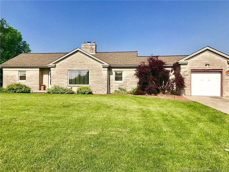 Beautiful three bedroom home located right off Hwy 62, situated on over an acre of land!! This home has the country setting with the convience HWY 62 and the new bridge. Home features beautiful hardwood flooring, large living room with additional family room, spacious eat in kitchen, full basement with extra large utility double sink, new backup battery for sump pump, large covered patio, and beautiful stone exterior! This is a must see home!! Agent to verify sq ft if critical.