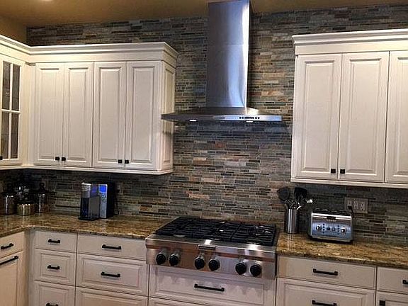 This home features a contemporary layout with a large open loft overlooking the two-story entry and a custom iron stair railing with hardwood steps. The main floor features solid oak hardwood flooring, spacious living and dining areas, a large, open family room that is adjacent to the kitchen, custom light fixtures, and an open floor plan for entertaining. The focal point of the family room is a beautiful custom travertine stone fireplace. Completely remodeled in 2014, the gorgeous open kitchen features deep cream solid maple custom cabinetry, high-end granite and stone finishes, extensive storage, stainless apron-front sink, and new professional KitchenAid Architect series stainless appliances, including 6-burner gas range, chimney range hood, double ovens, and refrigerator. An expansive primary bedroom/en suite spans the entire back of the house. The second-floor guest bathroom was remodeled in 2015 and includes an oversize walk-in shower with high-end finishes and fixtures. The exterior has tremendous curb appeal with extensive perennial landscaping, custom all-wood shutters, iron front porch railing, custom steel security door, and french doors off the backyard patio. A 2015 patio addition and extensive xeriscaping provide an ample outdoor entertainment space. The home features a new multi-stage furnace and air conditioner (July 2022) and new exterior paint (June 2021).