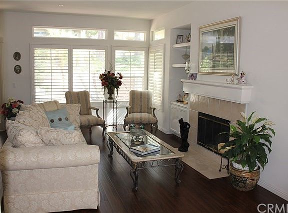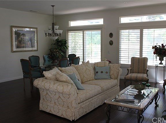 Wonderful single story light and bright end unit condo next to green belt with large backyard patio. Three bedrooms, two bathrooms, new wood laminate flooring, new tile flooring in bathrooms, spacious master suite with slider out to back patio, spacious living room with fireplace and dining area opening to backyard patio, kitchen with breakfast nook, inside laundry room with sink, mirrored closet doors, shutters, new toilets, and 2 car garage with storage. Palmia Senior Community with an 18 hole putting green, tennis & paddle tennis courts, gym, pool & spa, billiards, bocce, shuffle board, library, lovely club house, many clubs, parties and much more.