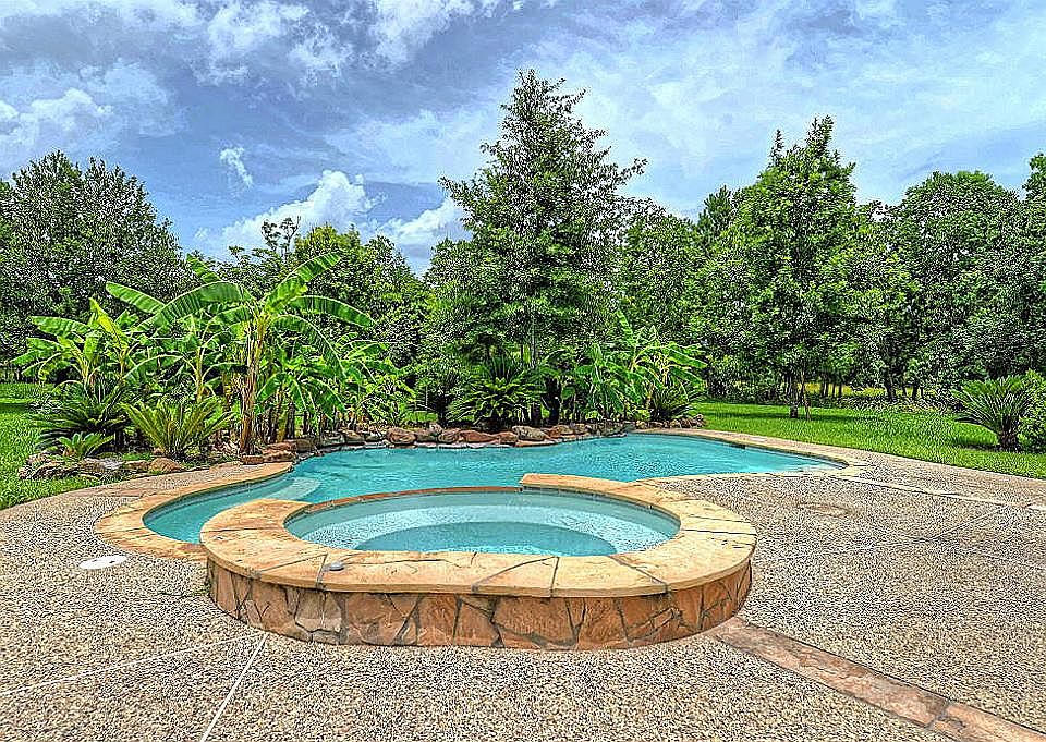Beautiful home on 1.10 acres, great location, UNRESTRICTED! Large one story all brick home offering: spacious island kitchen, formal dining, large den w fireplace and fantastic view of the large backyard and pool. Split plan with Masters Retreat featuring: dual sinks, whirlpool tub, separate shower and large closet! Study with built ins and hardwood floors. Enjoy your evenings in your own pool, home also has an apartment perfect for your guests or mother in law suite. NO MUD TAXES!