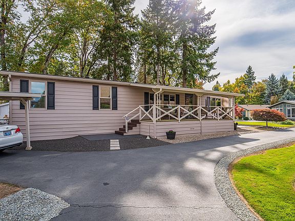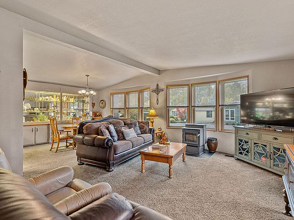 Country Charm! You will love this immaculate residence in the highly desirable Circle Tree Mobile Home Park! Built in 1987, this home shows incredible pride of ownership both inside & out! As you enter from the covered front porch, you'll find a comfortable 1560sf, 2 bed, 2 bath floorplan featuring a living room w/ vaulted ceilings & pellet stove plus a functional kitchen (all appliances included), eating area & a cozy family room both complete w/ built-ins. Two spacious bedrooms include a large master w/ dual closets & an ensuite bath complete w/ soaking tub, stand-up shower & two sinks! Additional features include a large laundry room w/ sink, tinted Milgard windows plus an energy efficient heat & air system! Outside you'll find a perfectly manicured yard ideal for small pets, a paved circle driveway w/ carport & a shed/workshop complete w/ a workbench & shelves! And don't forget, the space rent is only $350 p/month which includes water, sewer, & garbage. Call today!