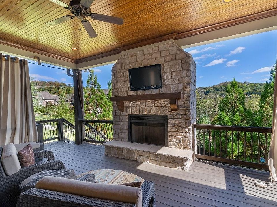 Quality Custom Construction by Trace Construction. Impeccably well maintained home. Open design with chef's kitchen, fantastic Master Suite down, private office w/fireplace, large bedrooms, fin. walk-out basement w/safe room, projector & screen, office, bedroom/2FBas, bar, & exercise room, covered porches w/two outdoor fireplaces is perfect for entertaining. Private upper level covered porch offers amazing views. This home has all the bells & whistles! Must See!