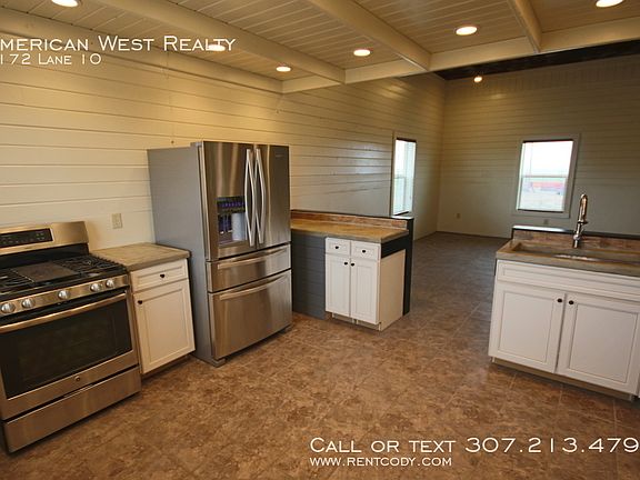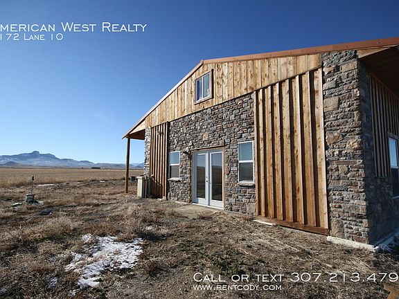 SCHEDULE A SHOWING ONLINE AT: showmojo.com/lh/ac781ba0c0 Located between Cody and Powell, this 2015 home is surrounded by farm fields with great views of Heart Mountain. Home sits on a corner of the ranch (land leased separately) with plenty of room for cars, trailers, and other vehicles. There is space for a corral if tenant brings their own paneling. Interior features efficient radiant floor heating throughout. Vaulted ceilings in the living room and kitchen with recessed lighting. Large wood fireplace. Kitchen has plenty of storage, steel appliances. Master suite has walk-in closet, private bath, and plenty of natural light. Great well water and septic. Tenant pays their own natural gas, electric, and trash. Pet negotiable. Contact American West Realty for more information. Ceiling Fan Heat Radiant Floor Kitchen Pantry Kitchen Refrigerator Kitchen Stove / Oven Parking Rv Or Trailer Utility Black Hills Energy Utility Garland Light & Power Utility Well Water Views Washer/Dryer Hookups
