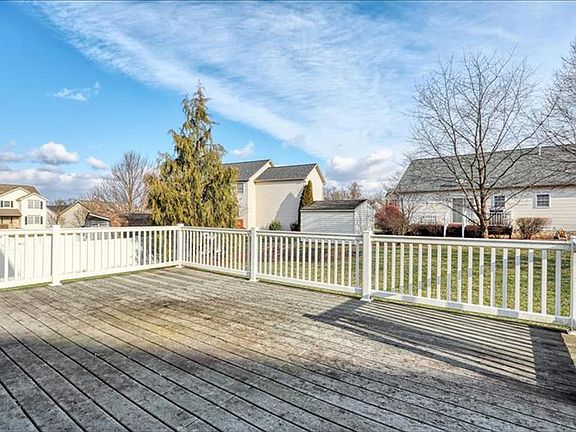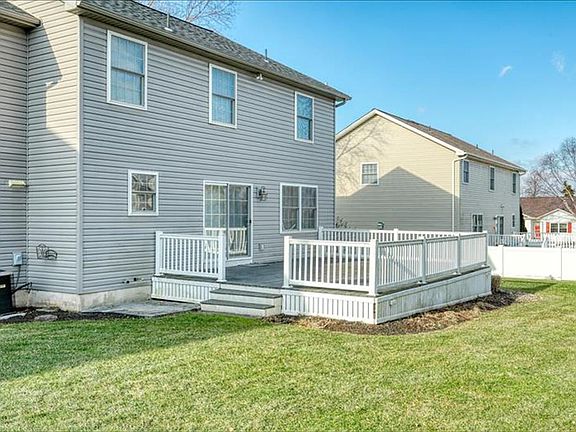 Exceptional home with a wonderful floor plan, excellent for entertaining. Gorgeous wood flooring on main level. 4 bedrooms upstairs, with laundry area. Master bedroom has full bathroom with Jacuzzi tub and stall shower. Kitchen has maple cabinetry, recessed lighting, ceramic tile flooring and stainless steel appliances. Contemporary décor, ceiling fans in most rooms. 2 story foyer with chandelier. Gas fireplace in family room. 2 Car attached garage. Trex deck off kitchen area, with level rear yard. Must see!