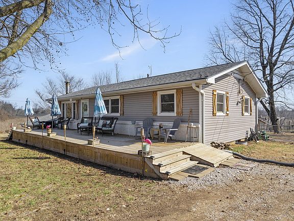 Dreaming of that farm living life? Old Mill Road is the place to be! Almost 5 acres of flat land just waiting for you to add the animals and plant the garden. You can sit at one of two great outdoor areas, watch the breeze blow and feel the world slow down. The front deck is surrounded by beautiful, producing cherry trees, as well as apple, peach and plum trees. Sit on the back porch and watch those blackberries and raspberries ripen before your eyes.This well-restored farm house has 5 bedrooms and 2 baths (2 downstairs bedrooms may be non-conforming because of window size.) Walk into the large dining room with lots of natural light that flows into the remodeled kitchen with stainless appliances (dishwasher new in '22). The pantry (which used to be an upstairs laundry, but water is now capped off) provides lots of extra storage space. A large primary with two guest rooms and a lovely remodeled bathroom finish off the upper level. Downstairs is a large entertaining space with wood-stove sure to warm up those winter nights. There is also an additional two bedrooms, full bath and an unfinished utility room with LOTS of storage and laundry with sink. Outdoors you'll find all the room you need to store toys, tractors and tools. A utility room with 180 sq ft, a shed with 308 sq ft, and additional outbuilding with 1310 sq ft as well as a chicken coop, bunny houses and a couple of stalls ready for goats or more chickens. All of the pasture land is fenced, with multiple divisions to keep animals separate if desired. The home boasts a new roof, sump pump, rain water softener system all added in 2020. New windows were added in 2021 and attic fan was updated in 2022. Includes a 1,300 and 500 gallon propane tank (owned).This home is a short drive to Springfield airport, shopping, entertainment, restaurants and all the ''city'' amenities you could want while still being pure country living! Don't miss this one!