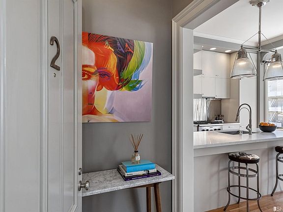 Stunning 1B1B in an elegant Victorian Building located in prime Pac Height perching high on Pacific Ave. This sun-filled unit offers high ceilings with period details and modern comfort of an updated kitchen and bath. Spacious living room with French doors opening to a sunny balcony. Modern kitchen featuring quartz counter-top, stainless-steel appliances and designer light fixtures. Nook area with curved windows facing south letting light shining through. Cozy bedroom suite with built in closets and large bay window area perfect for home office. Updated bathroom with east window for good ventilation. In unit washer and dryer. It is such a place one just desires to call home. Close to Filmore and Union shopping and dining districts. Walks to Parks. Easy commute to downtown.