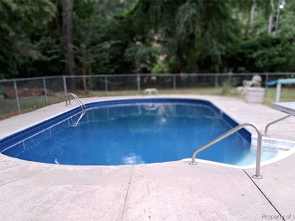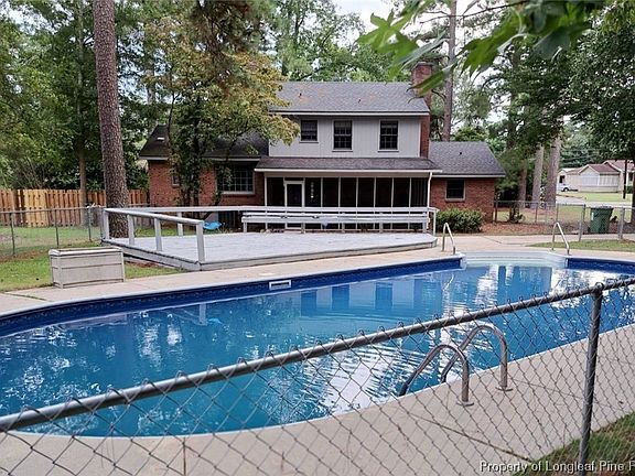 POOL HOME in Wagram! Must see this nice, spacious 4 BEDROOM, 2 1/2 BATH home in quiet neighborhood. NEW flooring in upstairs bedrooms and downstair laundry room. NEW pool liner in July 2023, new HVAC in 2016, new ROOF in 2018! Over 1900 sq. ft. living area and on very nice half acre lot with trees and woods behind home.