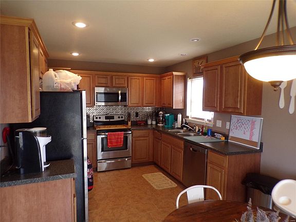 Adorable open floor plan with 3 bedroom 2 baths in the Ridge Creek subdivision. Walk in the front door and you will find large living room with lots of sunlight coming in. All three bedrooms are carpeted for your comfort and the kitchen has nice cabinets and plenty of counter space. This home is located down at the end of the road so no traffic passing by. Outside you will find a fenced in back yard with a covered patio great for all the BBQs. Also, Big bonus when living in Missouri is a Storm Shelter located in the two-car garage so no going outside in the weather for shelter!