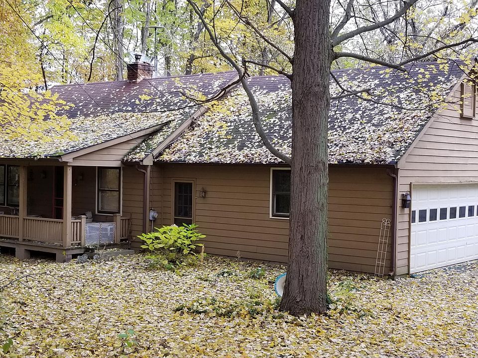 Ranch style home on 5.5 acres with woods and pond. Nestled amongst the trees, has a hillside view with deck overlooking the pond.