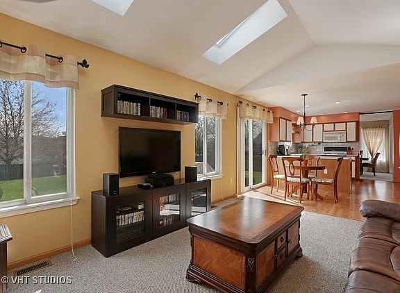 Immaculate home backing to pond in desirable Plainfield District 202 schools. Open floor plan boasts vaulted family room with skylights and fireplace. Kitchen has loads of cabinets plus eating area. Separate living and dining rooms. Master suite has walk in closet and private bathroom. Two full bathrooms upstairs. Finished basement has recreation room and plenty of storage. Second floor laundry. Fully fenced backyard with large patio and great pond views. Maintenance free exterior with aluminium soffits, fascia and trim. All appliances stay. Walk to Lakewood Falls Elementary School, parks and playground. Convenient to highways and shopping.