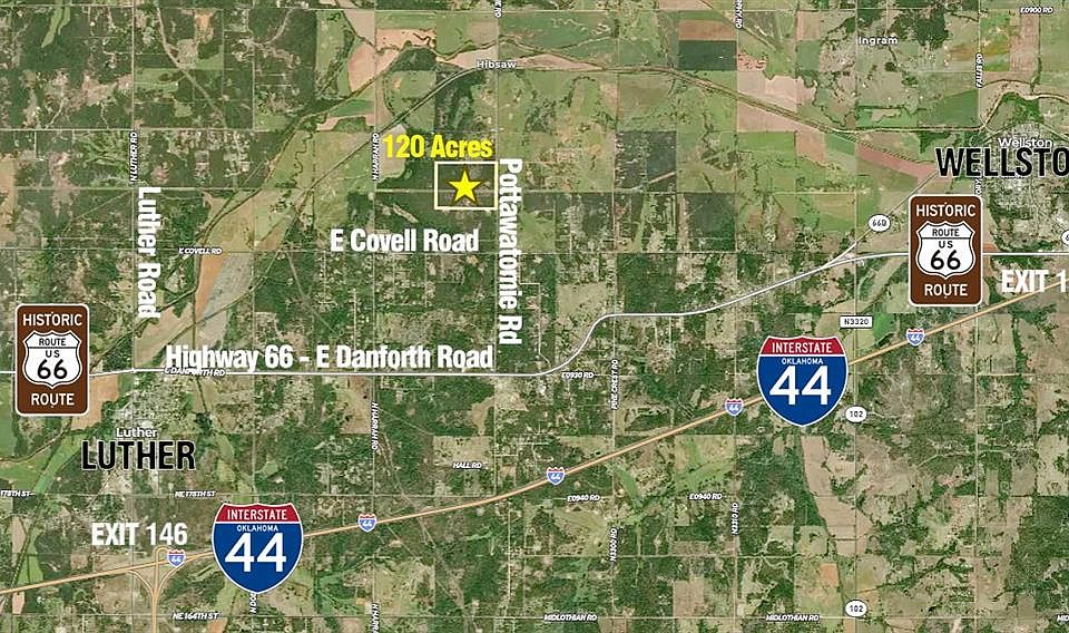 Priced to Sell / New Price - Prime 80 Acres for Developers, Ranchers, and Home Builders – Unmatched Location and Potential! Located just 20 minutes from OKC/Edmond and 3 miles east of Luther, OK, this 80-acre parcel (part of a 120-acre property) offers an incredible opportunity for development, ranching, or building your dream estate. Situated at the edge of Oklahoma and Lincoln County, it features over 650 feet of frontage along a paved asphalt road, ensuring excellent access and visibility: 1) Elevated land with ~50' gradual grade offering breathtaking views across all 40 acres; 2) Strategically raised pads perfect for development, ranching, or building a custom home