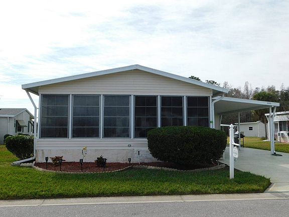 This lovely 1998 Fleetwood is a 2 bedroom/2 bath home with just under 1100 square feet. Laminate flooring and tile throughout the home which has taped walls in most of the living areas. The home is light and bright and the kitchen has plenty of cabinetry. The home has hurricane shutters and a water filter system. Some appliances have been updated as have the water heater and the plumbing. The master bedroom is spacious and has double closets, and the master bath has a single vanity and shower. The guest bedroom is large and the guest bath has a shower/tub combo. You will spend most of your time on the 10 x 22 carpeted sunroom which has 2 ceiling fans and plenty of vinyl windows. The home is being offered well-furnished and includes a golf cart which has newer tires and batteries (2021.) The home is on a leased lot with an interior view and listed for $89,900! Come and enjoy the good life in this premier resort-style community where Fees include the use of two pools, two hot tubs, a fitness center, tennis courts, bocce ball courts, pickleball, tennis, horseshoes, shuffleboard, cornhole, and countless indoor and outdoor activities. The onsite bar and grill features daily food and drink specials and provides monthly entertainment. This premier style community is located on 1,000+ beautiful acres with wildlife galore and is located close to Tampa and Orlando. There are two golf courses in the community. A (Championship Course and an Executive Course) where residents may purchase a membership or a 'pay as you play' membership.
