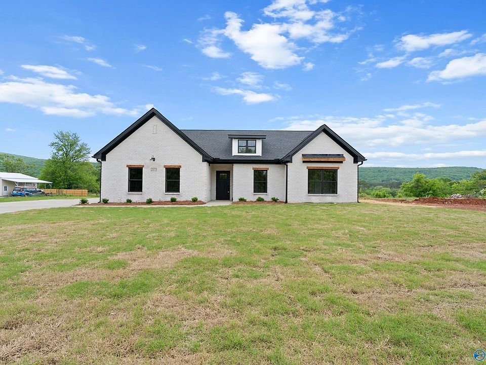 New custom home with stunning mountain views! This 3 bed, 2 bath beauty features an open floor plan, a cozy electric fireplace with shiplap accent, LVP, flooring Kitchen with an island, quartz countertops, subway tile backsplash, eat in area and large pantry. The isolated master suite offers a luxurious tiled shower with dual shower heads and double vanities. Enjoy sunsets from your covered patio overlooking the mountains or stroll on down less than a mile to the Madison County Fishing Lake. PLUS no HOA! Don't miss this rare find!
