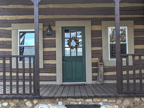 Character found here! Living room & fireplace is remaining portion of Hand-Hewn Log home from 1900 or prior. Nice renovation on home, in 2005. You find an awesome open kitchen-dining area with granite tops, center island, new SS appliances, side open pantry and back sitting area. Half bath off of the kitchen, as well. Master BR & BA on main and 2 BR-1 BA on the upper level. Nice back lawn - section fenced and an attached carport or a wonderful covered patio. 2 HVAC units - one new. Older storage shed.