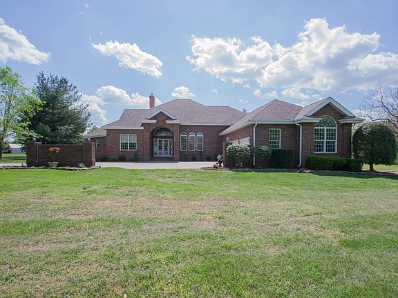 WOW. Almost 3,700 sf all brick with 5 acres on one level. This home is amazing, starting with the property...5 perfectly manicured acres, large beautiful trees for privacy, 3 outbuildings. The RV barn is 25x45 with 14' door. Workshop is 40x40 and 12x24 storage shed. Completely private in ground pool with concrete patio surrounding it, plus a covered patio with 4 different access points from the house overlooking the pool and property. The interior of the home is absolutely gorgeous. Enter through double front doors and into the formal living room with 15' ceilings and a wall of glass overlooking the pool. The kitchen and second living room have floor to ceiling windows.A huge master bedroom with access to covered patio and large completely glass bay window. 3 more huge rooms. A must see!