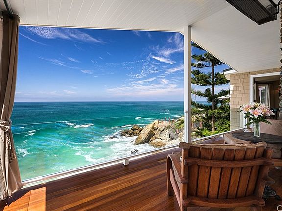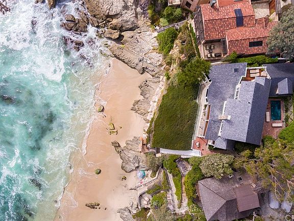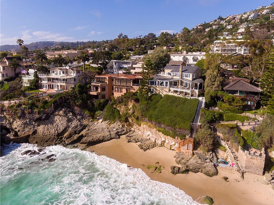 "Seastones" is one of Laguna Beach's most charming oceanfront properties. Located in the very best block of Woods Cove, this impeccably kept seaside cottage is one of four homes above this scenic beach. Resting on one and one-half lots, the property has extensive ocean frontage that affords every room restful ocean views. The circa 1916 shingle-style cottage is spacious and inviting. Though updated, it still retains all of its period charm and details including hardwood floors, a covered oceanfront veranda, and the original stone fireplace with a heart shaped rock inset into the middle. Its large rooms are perfect for entertaining and open to ocean terraces and a veranda on three different levels. Guests arrive through a completely private garden courtyard, with a swimming pool surrounded by high stone walls set in place decades ago. The privacy of the setting is extraordinary, with no neighboring properties looking into the house or gardens. Private gated steps lead to the beach below. The sunny master suite has walls of windows, a sitting room, and a beautiful bath. Located between the Montage and Surf & Sand (and within walking distance of both), the ideal location is quite easily accessible to all of Laguna's most desirable shops and restaurants.