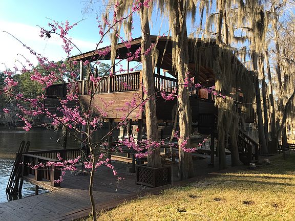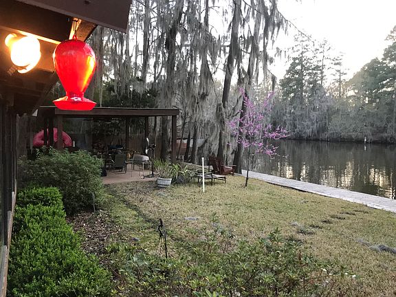 Lakefront Caddo Lake with 3 stall boat house, Patio with fire pit, sink, outdoor kitchen, large upper deck with half bath. Stack washer/dryer, refrigerator, dishwasher, stove and microwave. . Large Master on top level and 2 sets of bunkbeds on lower level. Extra lot does not convey.
