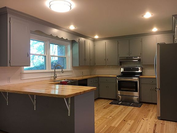 waterfront home on a gently sloping lot. Spacious 4bd/2.5 ba/2 car garage with wood burning fireplace. Bedrooms & 2 baths are upstairs with 1/2 bath downstairs. Bedrooms have new carpet, bathrooms have beautiful tile, the rest of house has gorgeous yellow pine flooring. New metal roof installed 2019, new vinyl windows. Large covered dock with beautiful lake views. Come see!
