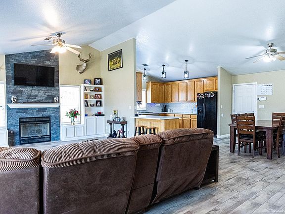 Charming property nestled in Golden Hills East. Built in 2006, this cheerful and updated residence spans 1680 square feet with three bedrooms and two beautifully remodeled bathrooms. As you step inside, you'll immediately appreciate the open concept layout accentuated by vaulted ceilings. The centerpiece of the living room is a stunning floor-to-ceiling stone fireplace, adding warmth and elegance to the space. The wood-look ceramic tile floors throughout the home offer both durability and style, complementing the modern aesthetic. Additionally, the property boasts twenty OWNED solar panels, ensuring energy efficiency and reduced utility costs. For those who love to gather and entertain, the inviting kitchen and dining area provide the perfect backdrop. Another notable feature is the new septic system installed in 2021, providing peace of mind and minimizing maintenance concerns. Step outside into the backyard, where you'll find a tranquil retreat ideal for outdoor activities and relaxation. The well-maintained landscaping offers curb appeal and serenity.The prime location, open concept layout, and thoughtful upgrades make this a truly desirable property for those seeking a comfortable and convenient lifestyle.