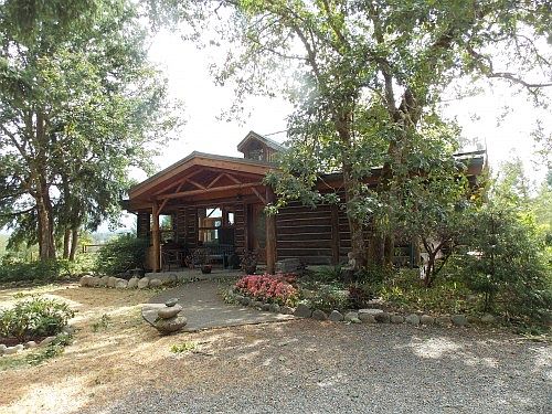 This unique 3story log home on 10 v. private sanctuary-like acres (2 separate lots) is what "Dreams are made of". Soaring 2 story ceilings, rough logs & high end finishes, huge decks, lots of windows to enjoy spectacular views of Mt Rainier, garden, fruit trees, pasture & woodlands. Wired for generator, cozy wood stove, full guest apt lower floor, 2car detached garage, fencing etc. Different, Uncommon. Elegant. Impossible to describe all features. Look @ photos, better yet, come see this jewel.