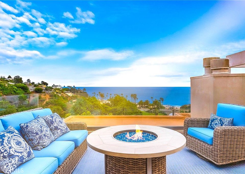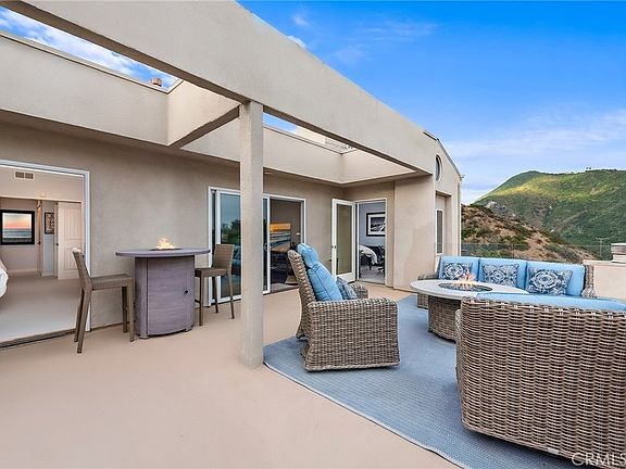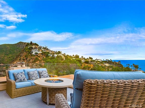 Panoramic views overlooking the ocean, the mountains, and the beach! Breathtaking sunsets! The sound of the waves! Easy 3-minute walk via a private path gets you to Aliso Beach, the Montage and the Ranch at Laguna Beach - you are that close! This is a rarely available PRIVATE corner unit with no one living above, no neighbor intrusion, and no rooftops in your ocean views from every room, including the kitchen. This is an oasis that feels like living a dream vacation every day. The main deck overlooking the ocean is absolutely huge, has two fire pits, and is great for entertaining. The master suite has its own extra large private balcony facing the mountains and the ocean. This location in the 11-unit community feels nicely tucked away - just you and the surrounding natural landscape. Head inside and gaze at the ocean from the rain shower built for two in the master bathroom. The entire unit has been updated with tasteful attention to detail, including authentic hardwood floors, Pella double-pane windows and sliders, new carpet in the bedrooms, Kohler fixtures, a chef's kitchen with a large island, Bosch refrigerator and a deluxe wine fridge. The bathrooms have been entirely redone. The layout feels spacious and breathable, with high ceilings in the master bedroom, huge showers, plenty of closet space, and in-unit laundry with washer & dryer ready to go. The large 2nd bedroom feels like another master. Don't worry about the lack of central A/C - there is a super high-end Mini Split A/C unit installed that will easily cool the entire unit on days when the air is still instead of the usual cool saltwater breezes that wonderfully pass through. There is secure gated garage parking with two side-by-side spaces and extra storage. The furniture and artwork are the owner's, not staged, and these can be included with the purchase if so desired, for a truly turnkey "vacation home" experience - just move in and enjoy! And for fun, the home has a "coffee table" arcade machine loaded with hundreds of classic games, a brand new Sony 4K TV and 4K Ultra player. This is the most private unit with the best views in the community in an incredible location in Laguna Beach. It's a home that has it all ready to go, making this a special and exciting opportunity. Enjoy a lifestyle of paradise and live the adventure!