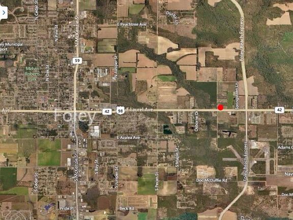 Great location for your small business, only a half mile West of the Foley Beach Expresway on US 98. Currently the property is zoned B3 and has been annexed into the City of Foley. The home currently on the property would be an easy conversion into offices or even a clinic. A climate controlled 1000 square ft shop at the rear of the property is perfect for additional office space or workshop.