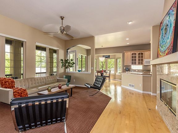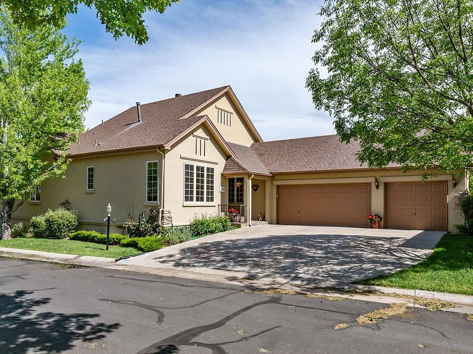 Rare opportunity for a Cottages @ Saddle Rock patio home w/ 3 car garage! Sunny main level includes a spacious living room adjacent to the kitchen and eating space - ideal for summer BBQs! The kitchen features plentiful 42" maple cabinets with crown molding, granite countertops, generous pantry, a planning desk, and all appliances included! Intimate formal dining room is just off of the kitchen! Relax in the master suite with luxurious 5-piece bath and walk-in closet! The 2nd bedroom has it's own 3/4 bath, and makes a great guest suite or a main floor office! The finished basement boasts a large rec room with wet bar and wood floors, two large bedrooms and a 3/4 bath! 10' ceilings on the main level, 9' ceilings in the basement, 8' solid core doors throughout, and newer furnace & water heater are just a few special features this home offers! HOA maintains the home's landscaping! Super east-facing deck for shady afternoons - access from kitchen nook and the master bedroom!