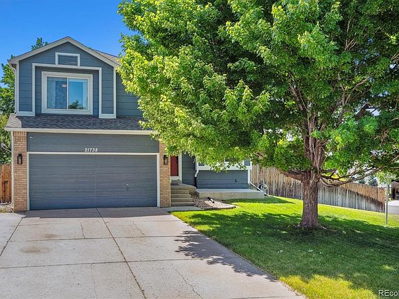 Great starter home 3 bedroom 2 bathroom 2 car attached garage in great condition. Formal Living room, kitchen with eat in area with plenty of cabinetry. The family room with gas fireplace and large window, a door exits to the big private back yard that will handle the family and friends get togethers, with a patio and raised deck a large lawn area with mature trees, with shade and privacy, also includes a storage shed. The upstairs has your Master Bedroom and bath along with two additional bedrooms and hallway bath. Exterior has newer paint and roof (2018) same for the windows. Short distance to downtown Parker and quick access to E-470 and I-25.