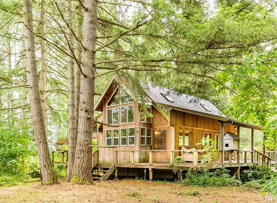 Welcome to the Lost Kingdom! Rediscover the magic of the forest & mature landscaping as you inhabit your own private haven. A rustic cabin in the woods, filled with character & charm. So many details awaiting to be uncovered! Bay windows; French doors; wood floors; exposed beams. Wrap-around deck encompasses the whole home. Tall, large timber creates the oasis in the park setting hosting garden areas, water features, grapes, figs, apples, & a cherry tree dripping with cherries.