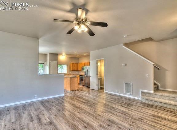 Don't Miss This Amazing Move-In-Ready, Open Floor Concept Townhome With Two Master Bedroom Suites! This Home Showcases: New Stainless Steel Appliances, New Luxury Tile Vinyl Flooring, Plush New Carpet & Pad, New Light Fixtures & LED Lighting, New Upgraded Window Blinds, Fresh New Interior Paint, New Kitchen Sink Faucet, Newer Hot Water Heater And The Washer & Dryer Are Included!! You'll Enjoy The Park Across The Street And Easy Access To I-25, Shopping & Military Bases. Come See This Beautiful Home Today!!
