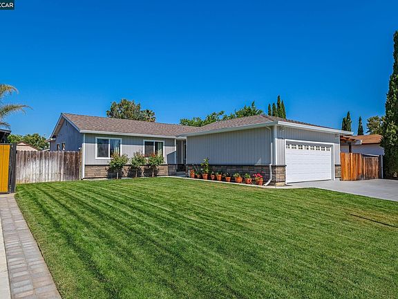 Move in ready home in desirable Springtown neighborhood! Pull up to the front yard with perfectly manicured lawn and well maintained roses. Featuring 3bed/2bath with approximately 1303 sq ft of living space on a 7405 sq ft lot, this home offers an abundance of natural light with vaulted ceilings in the main living area. As you walk in you will immediately feel the the cozy and comfortable atmosphere.Warm yourself on a chilly evening by the classic brick fireplace in the living area. Kitchen is updated including quartz countertops, stainless steel appliances and a gas range. Step outside to the charming backyard w/a covered deck on one side, perfect for dining al fresco. A second area for entertaining leads out from the living area. Primary bedroom offers a third exit to the backyard with slider door. Backyard shed included, where there is ample storage. Home offers a whole house attic fan. Boat parking on side yard. Garage has LED lighting, a workbench and cabinets which convey with the home. Easy access to Freeway and Ace Train. Close to Marlin Pound Park, schools, greenbelt, shopping and restaurants. Livermore Outlets and Wineries nearby. Welcome home to 2174 Buckskin Rd. You are going to love it here!